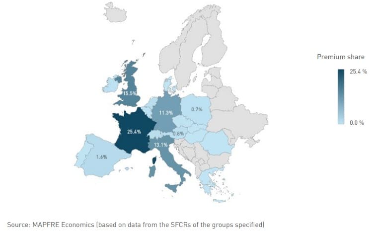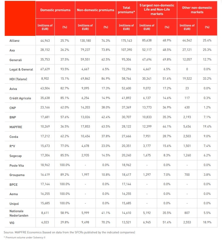 Table 1. Premium structure among the European insurance groups analyzed, 2024