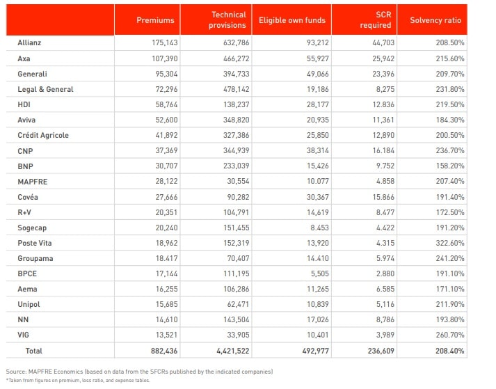 Premiums and Solvency Ratios of the Main European Insurance Groups