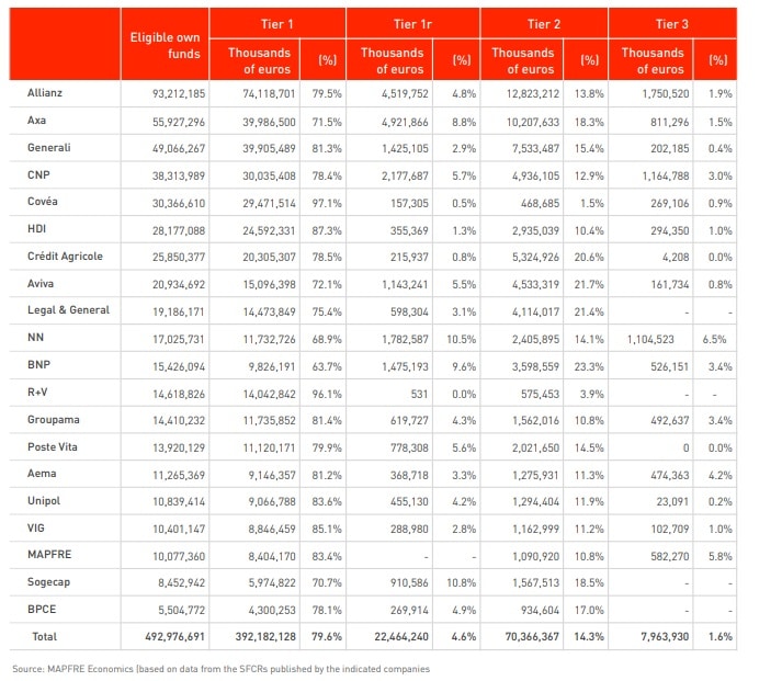 The full analysis of the evolution of premiums and solvency levels in the European insurance industry can be found in the report Premiums and Solvency Ratios of the Main European Insurance Groups, prepared by MAPFRE Economics, available at the following link: