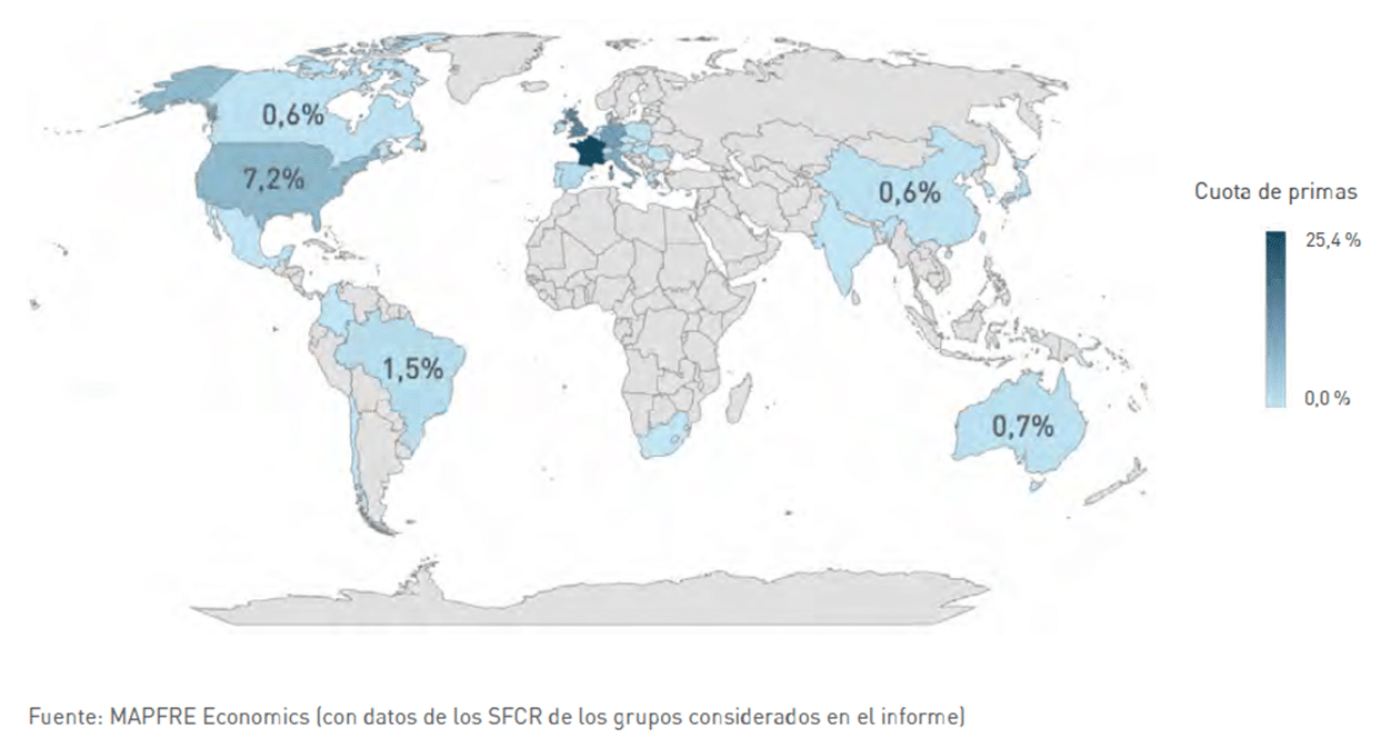 Por otro lado, el epígrafe “resto de mercados no domésticos” de la Tabla 1 recoge, para cada grupo asegurador, las primas correspondientes a mercados que no forman parte del mercado doméstico de cada país, ni de los cinco principales países donde estos grupos emiten sus primas no domésticas. Una mayor proporción en esta categoría indica una mayor diversificación geográfica del negocio asegurador, mientras que valores reducidos reflejan una concentración más alta en mercados prioritarios o locales. En términos generales, los grupos con mayor presencia internacional y una combinación equilibrada de negocios de Vida y No Vida presentan un perfil más resistente frente a los ciclos financieros y económicos, mientras que las entidades de enfoque doméstico o especializado dependen en mayor medida de las condiciones macroeconómicas y regulatorias de sus mercados de origen.